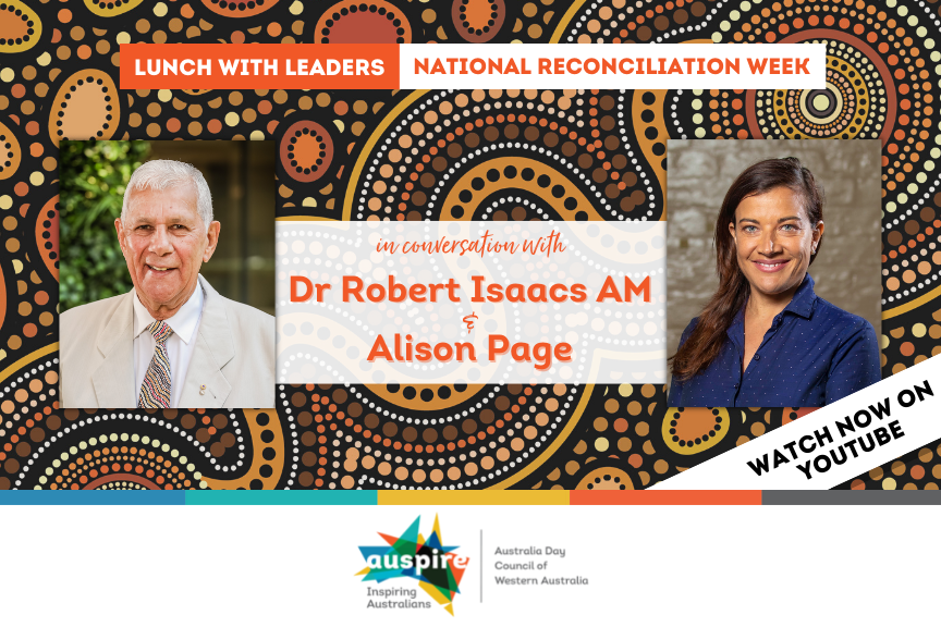 Auspire – Australia Day Council WA welcomed attendees online to hear from Dr Robert Isaacs AM and Alison Page during National Reconciliation Week 2022.